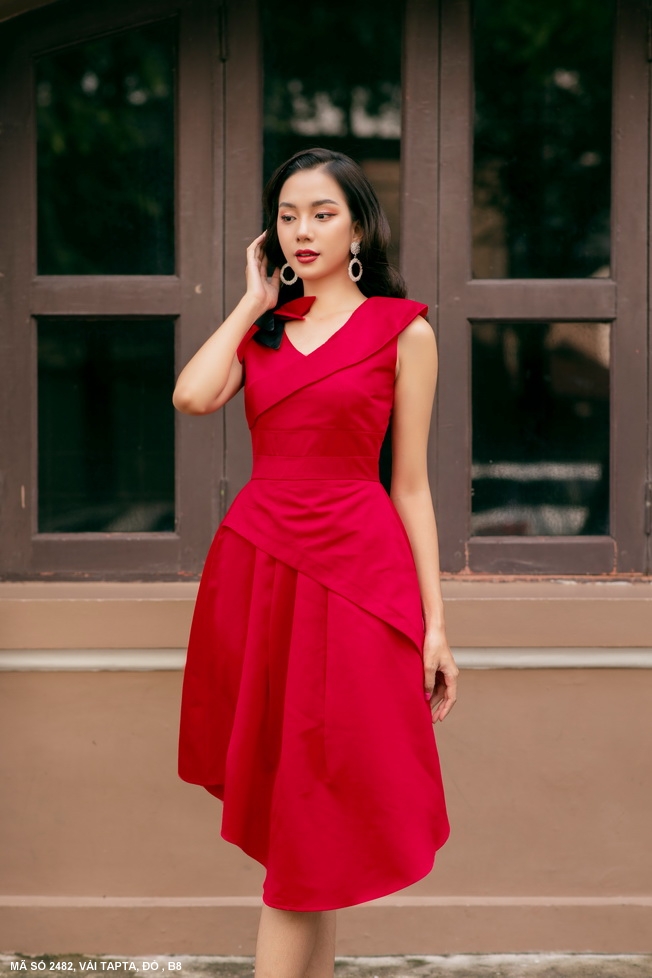 ĐẦM XÒE CỔ DÚN NƠ TRƯỚC NGỰC XINH XẮN