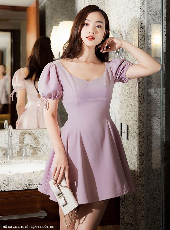 ĐẦM XÒE CỔ TIM TAY NGẮN DÚN THẮT NƠ - 2462