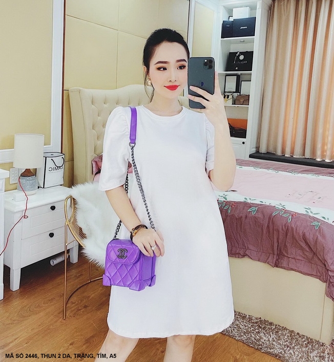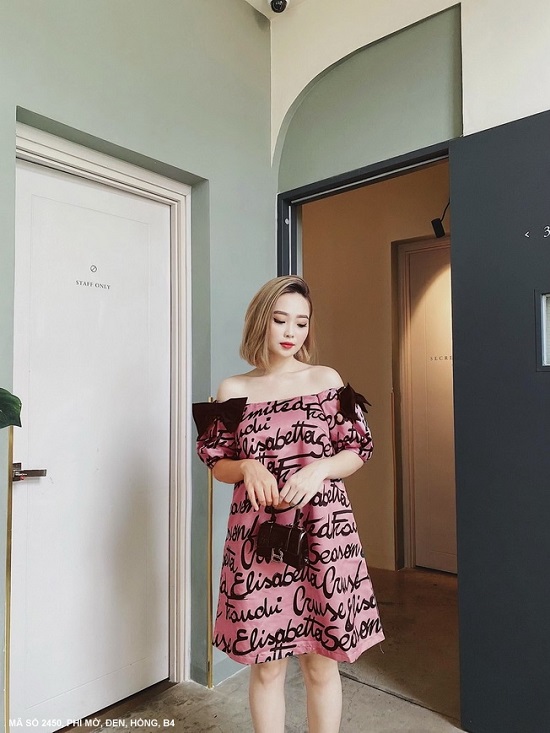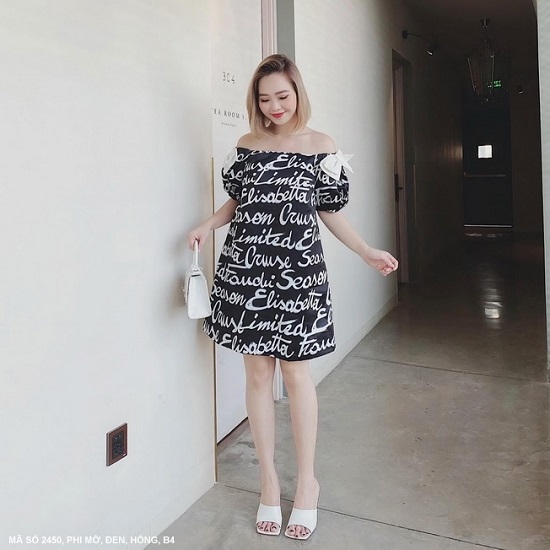 ĐẦM TAY NGẮN RỚT VAI IN CHỮ CÁ TÍNH - 2450 Mã số : 2450
