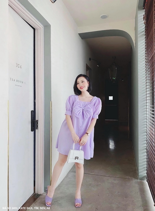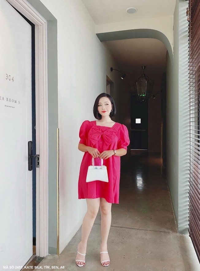 ĐẦM RỘNG TAY PHỒNG ĐÍNH NƠ LỚN TRƯỚC NGỰC - 2453