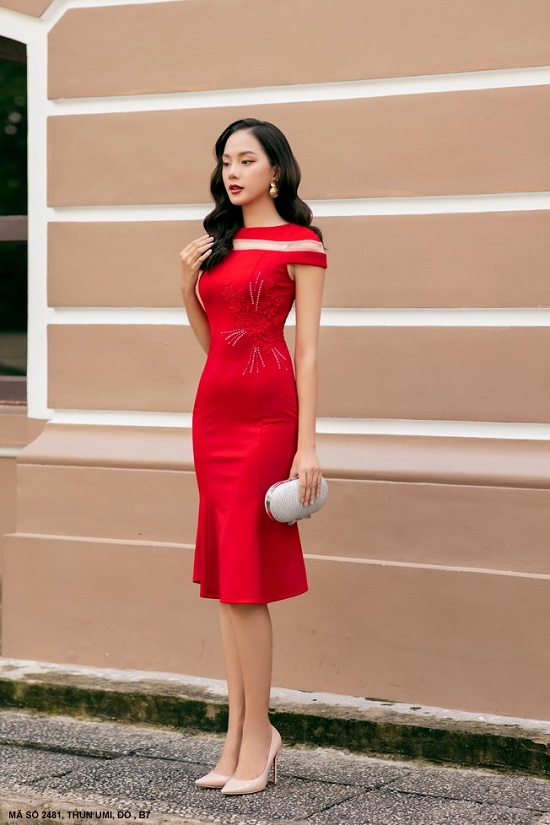 ĐẦM ÔM CỔ THUYỀN SÁT NÁCH ĐÍNH HOA EO- 2491