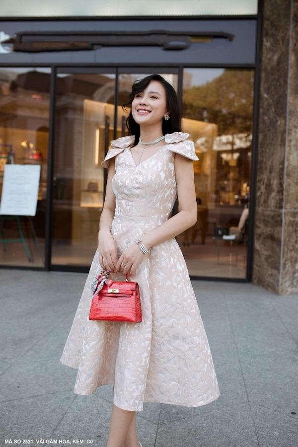 Sản Phẩm MaDe In Việt NamHàng Shop Cao CấpĐẦM XÒE CỔ TIM ĐÍNH HOA HỒNG 2 VAIMã số : 2521Chất liệu : Gấm Hoa