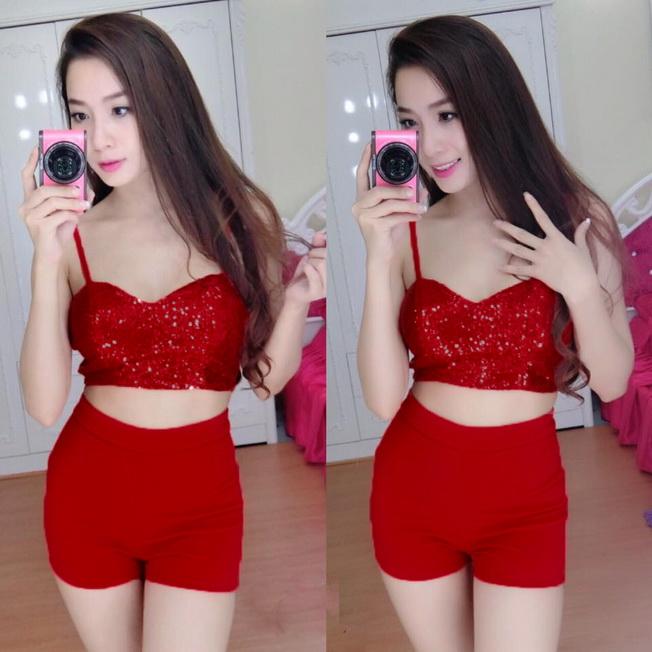 BỘ ÁO KIM SA VÀ QUẦN SHORTMã số : 117 Loại vải : Thun Tuyết Mưa Màu : Đen, Đỏ, Xanh Bích