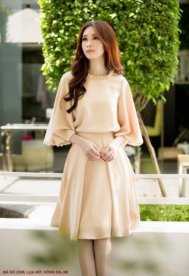 BỘ ÁO TAY VÀ VÁY CÓ CỔ ĐÍNH HOAMã số : 2205Loại vải : Lụa MềmMàu : Da
