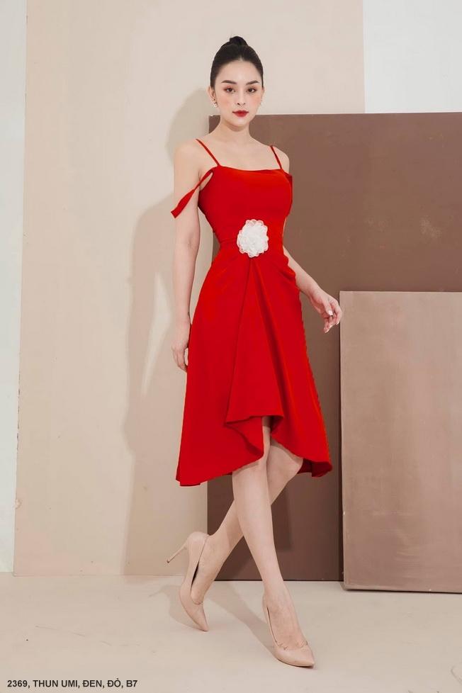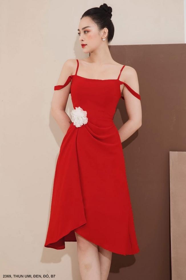ĐẦM 2 DÂY EO ĐÍNH HOA HỒNGMã số : 2369Chất liệu : Thun UmiMàu : Đỏ, Đen