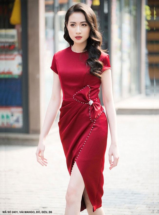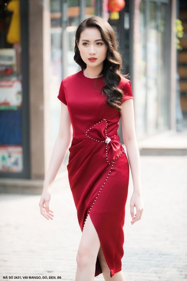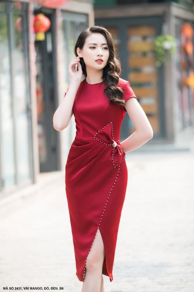 ĐẦM CỔ THUYỀN TAY NGẮN EO ĐÍNH NƠ ĐINH NGỌC TRAI - 2431Mã số : 2431Chất liệu : Vải MangoMàu : Đỏ, Đen