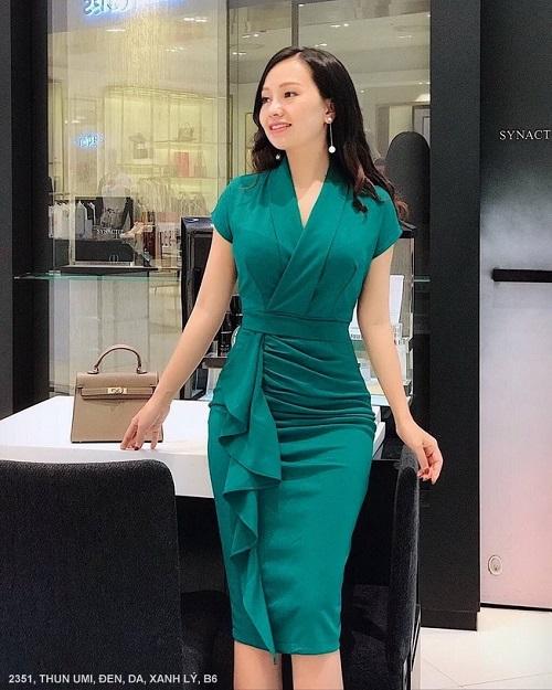 ĐẦM CỔ TIM CHÉO TAY NGẮN DÚN TỪ EO XUỐNG LAI Mã số : 2351Chất liệu : Thun UmiMàu : Đen, Da, Xanh Lý