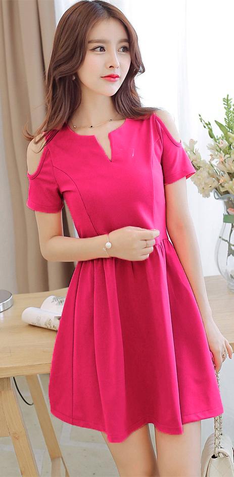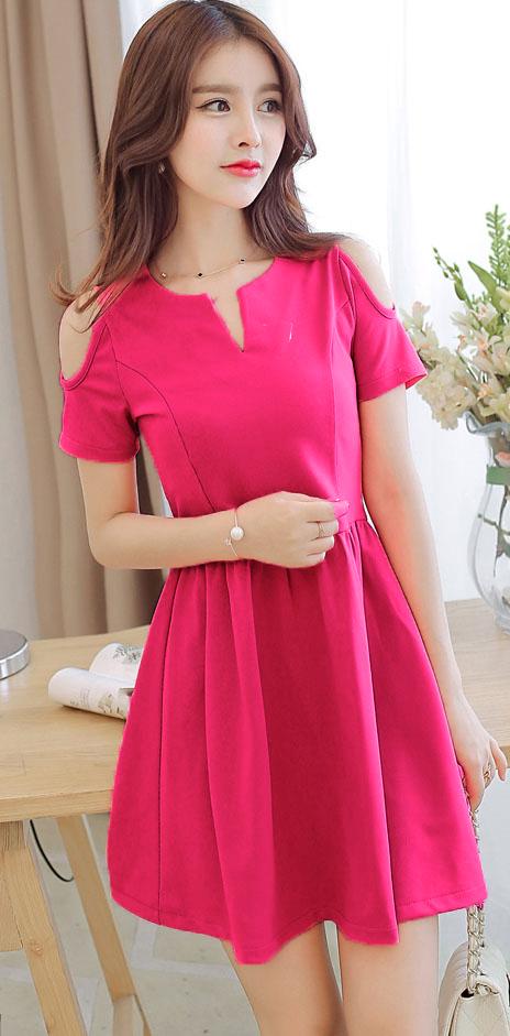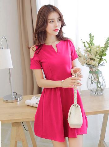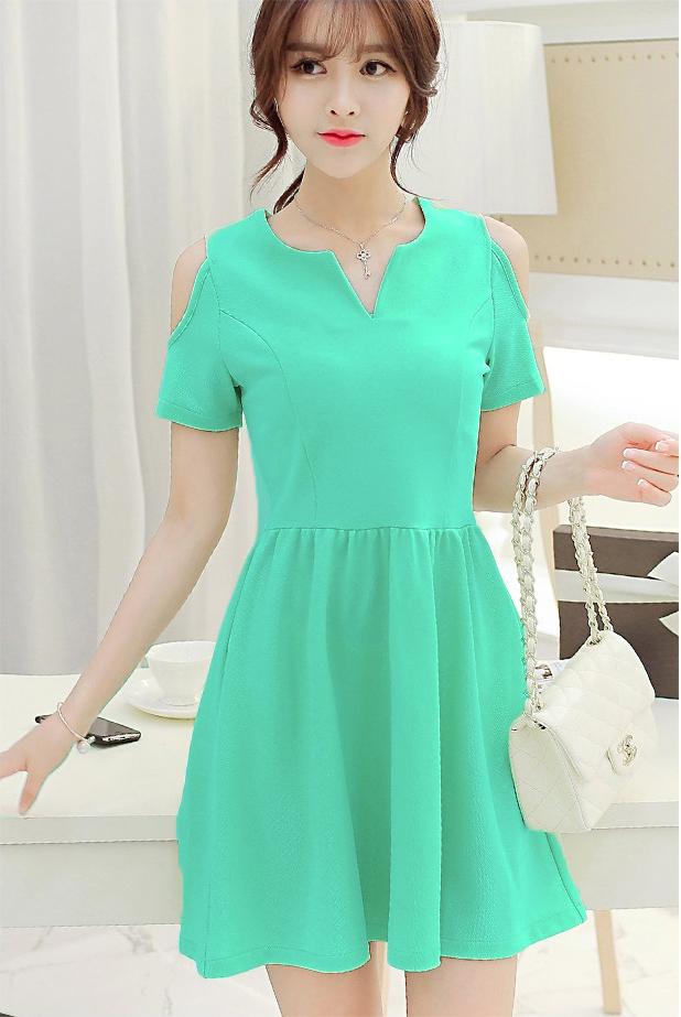 ĐẦM CỔ XẺ VAI HỞMã số : 85Loại vải : Thun Dạ LenMàu : Sen, Xanh Ngọc, Đỏ