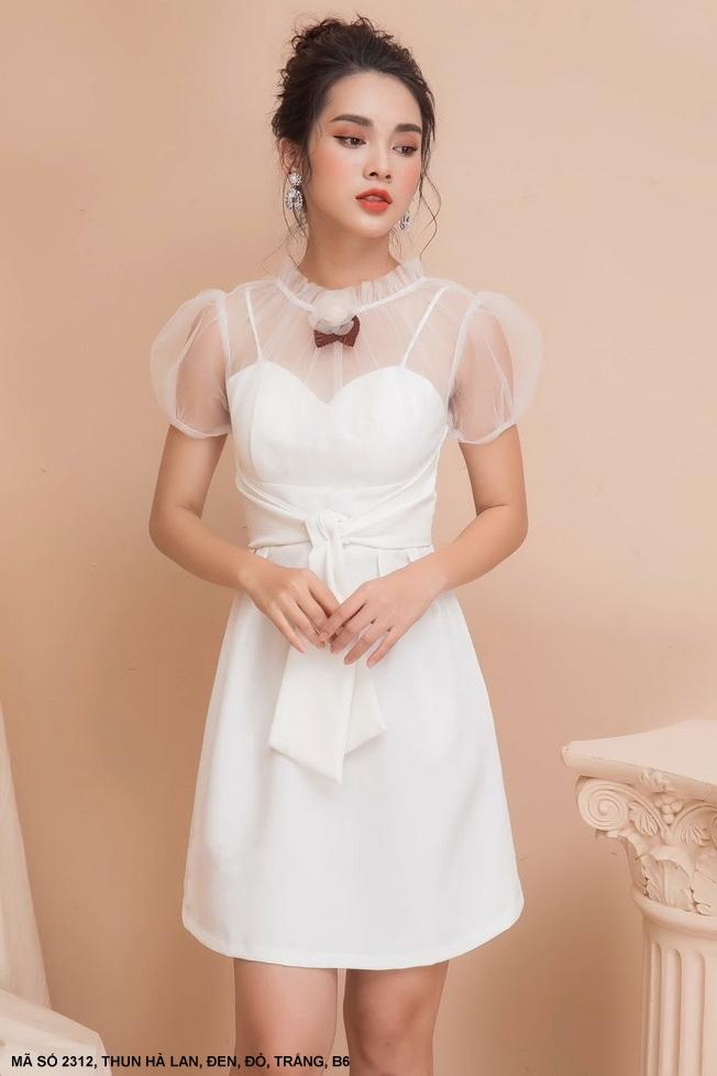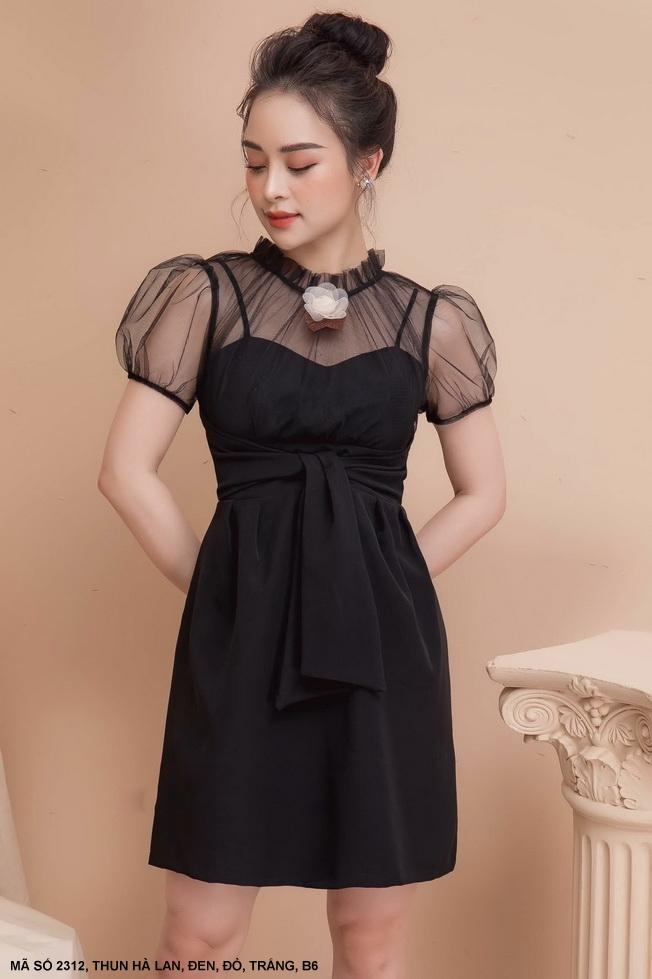 ĐẦM CÚP NGỰC TAY NGẮN PHỐI LƯỚI Mã số : 2312Chất liệu : Thun Hà LanMàu: Đen, Đỏ, Trắng