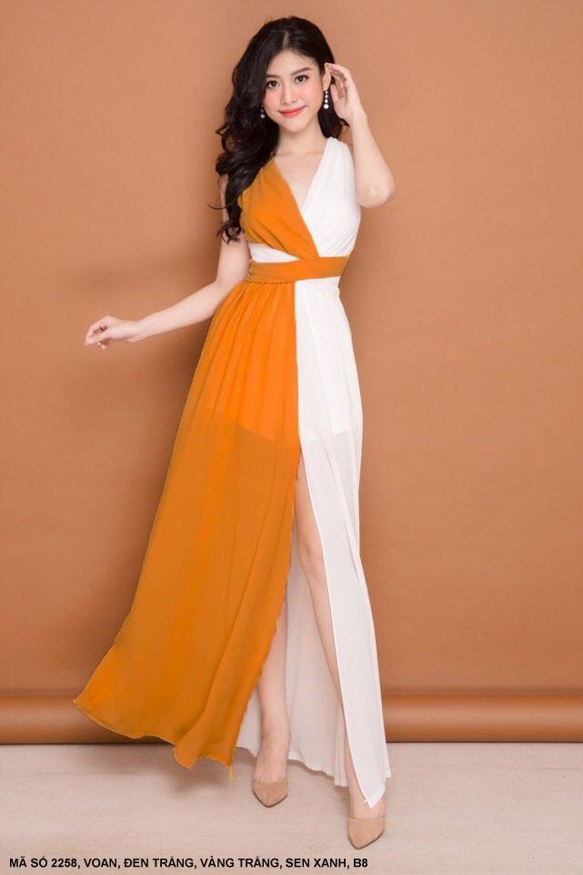 ĐẦM DẠ HỘI 2 MÀU SANG TRỌNGMã số : 2258Loại vải : Voan ChinfonMàu : Đen Phối Trắng, Vàng Phối Trắng, Xanh Phối Sen