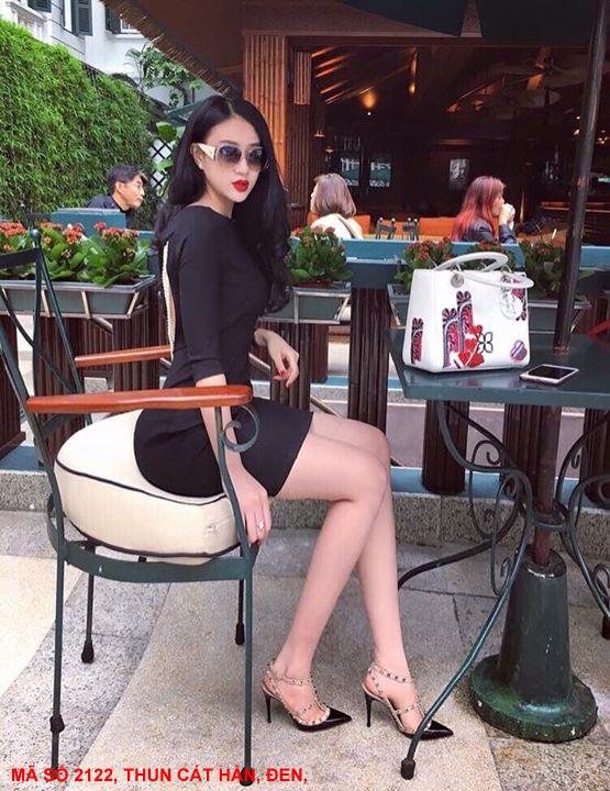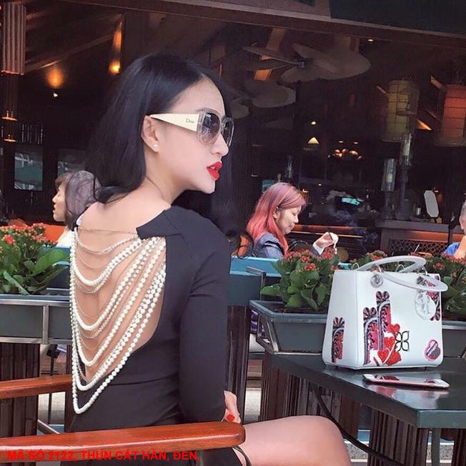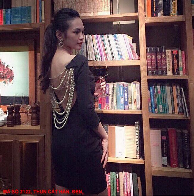 ĐẦM ĐÍNH CHUỖI NGỌC TRAI SAU LƯNGMã số : 2122Loại vải : Thun Cát HànMàu : Đen