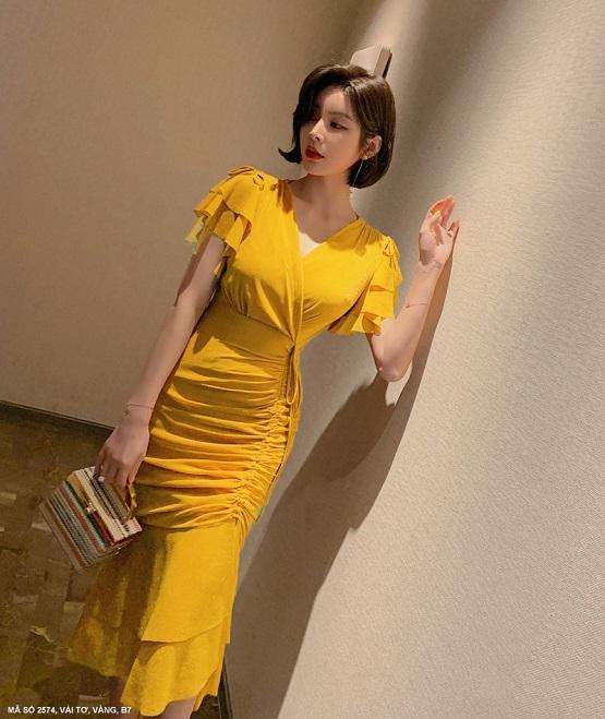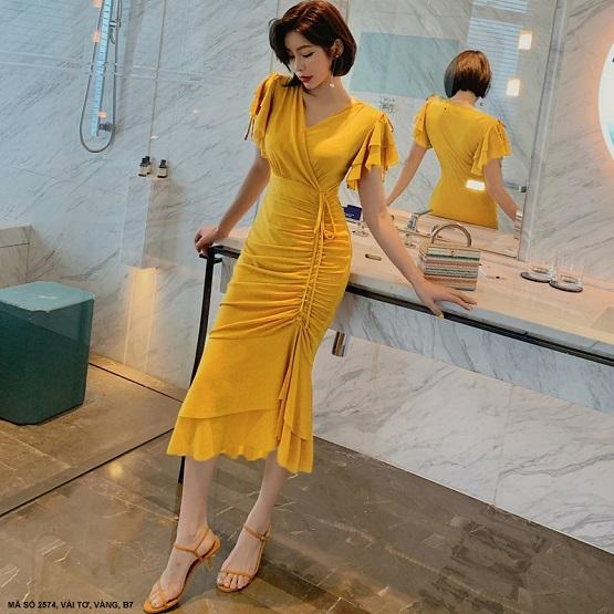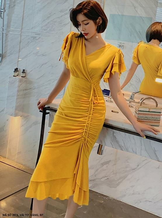 ĐẦM DÚN TAY DÚN THÂN QUYẾN RŨ - 2574Chất liệu : Vải TơMàu : Vàng