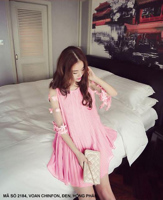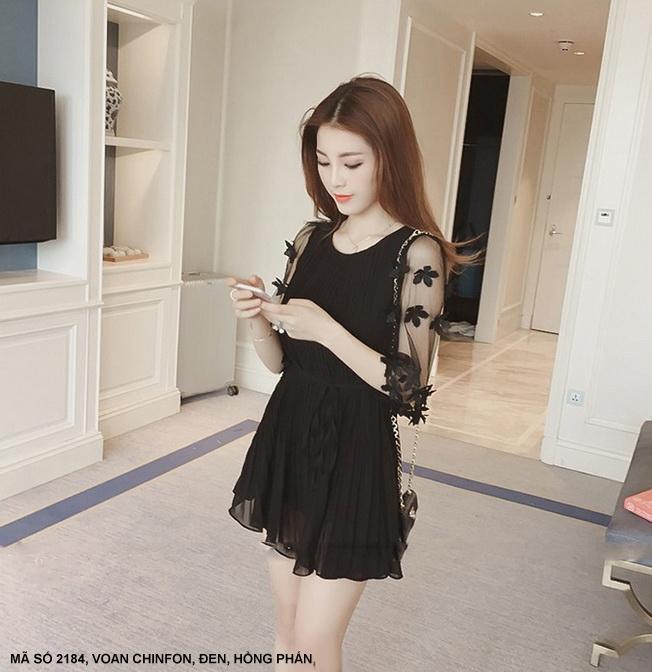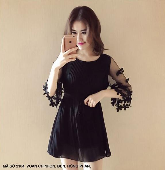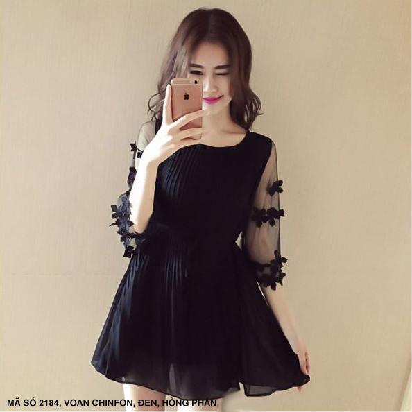 ĐẦM DÚN TAY LỞ ĐÍNH HOAMã số : 2184Loại vải : VoanMàu : Hồng Phấn, Đen
