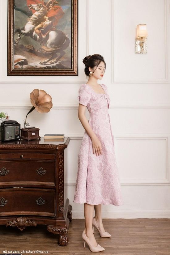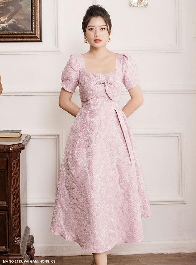 Sản Phẩm MaDe In Việt NamHàng Shop Cao CấpĐẦM GẤM CỔ VUÔNG TAY NGẮN PHỒNG ĐÍNH NƠ LỚN TRƯỚC NGỰC-2495