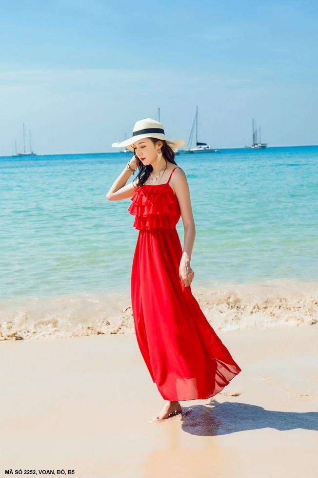 ĐẦM MAXI 2 DÂY 4 TẦNGMã số : 2252Loại vải : Voan ChinfonMàu : Đỏ