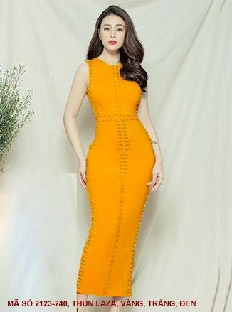 Đầm Ôm Đính Hạt Vàng Mã số : 2123Màu : Đen, Vàng,Loại vải : Thun Laza