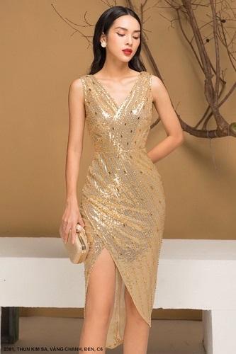 ĐẦM ÔM THUN KIM SA SANG TRỌNG - 2391Mã số : 2391Chất liệu : Thun Kim TuyếnMàu : Vàng Chanh , Đen