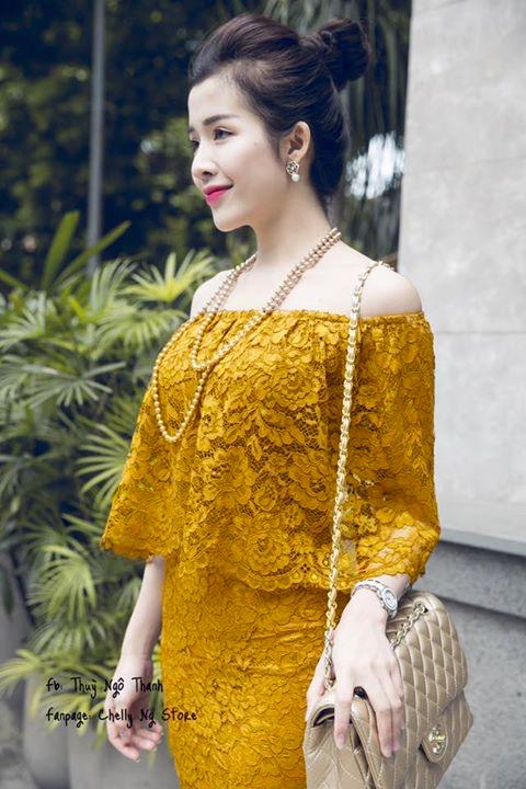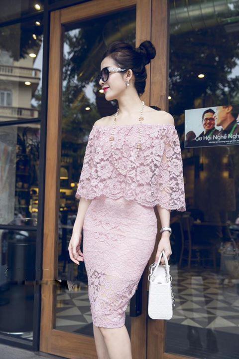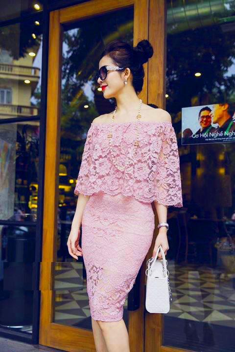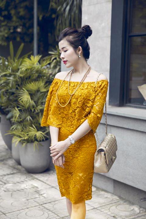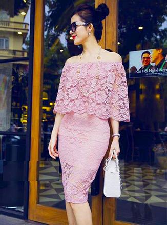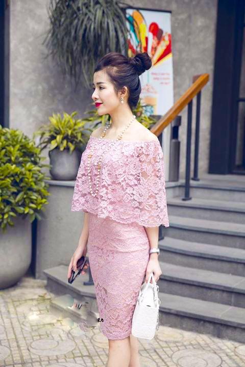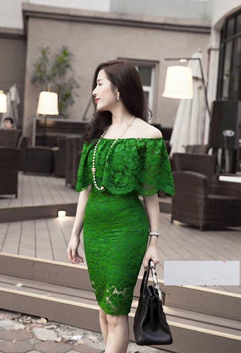 ĐẦM REN NHÚNG CỔ NGANG VAIMã số : 53Loại vải : Ren Cao CấpMàu : Vàng, Hồng Phấn, Xanh Két, Trắng