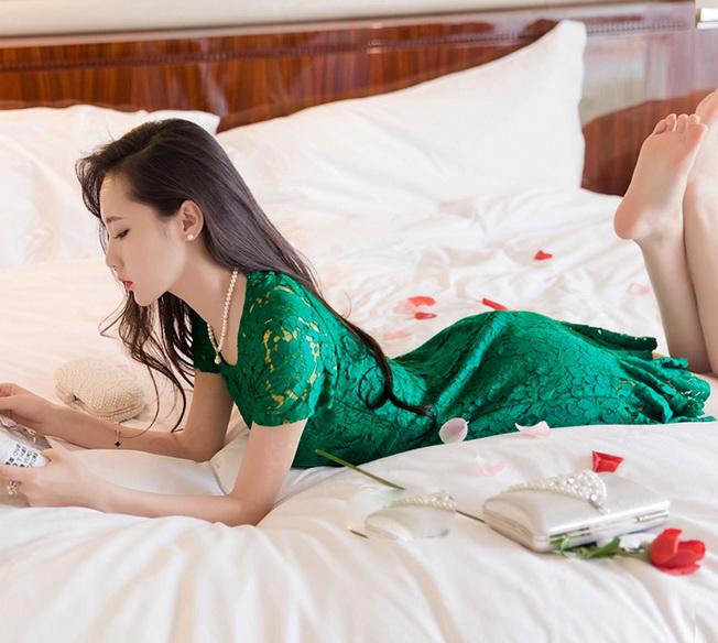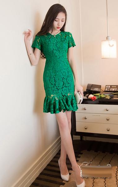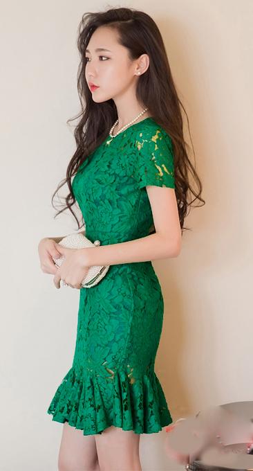 ĐẦM REN TAY NGẮN DÚN LAIMã số : 86Loại vải : Ren Cao CấpMàu : Xanh
