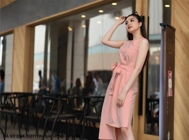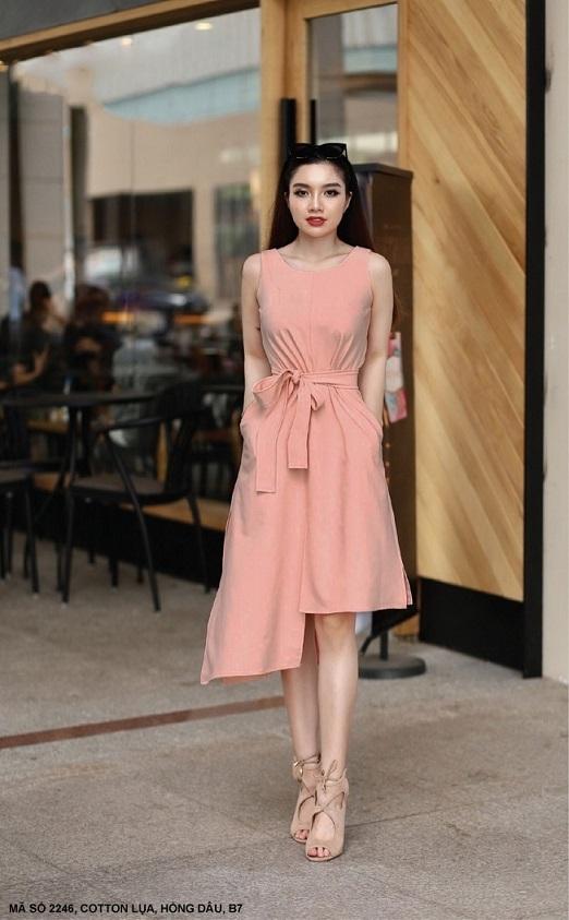 ĐẦM SÁT NÁCH CỘT NƠ EOMã số : 2246Loại vải : Voan LụaMàu : Hồng Dâu