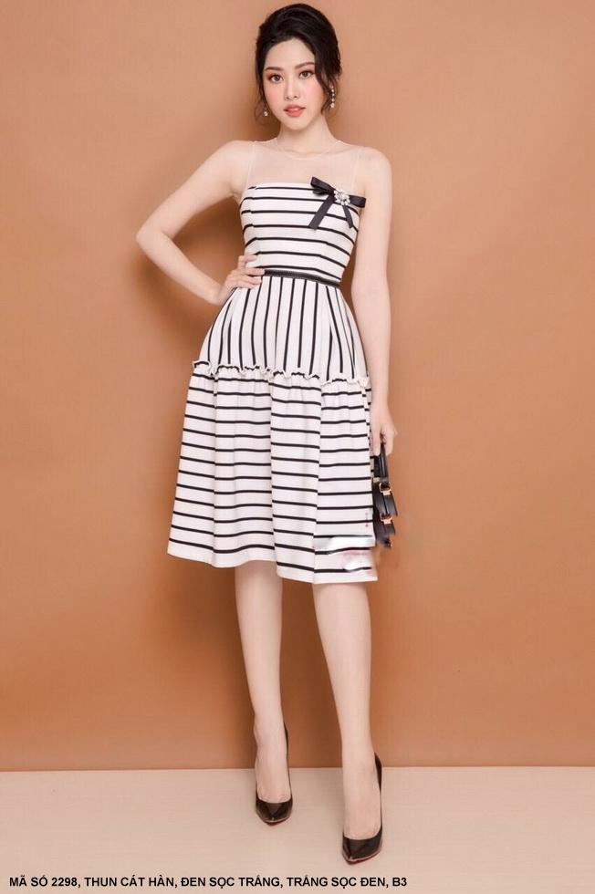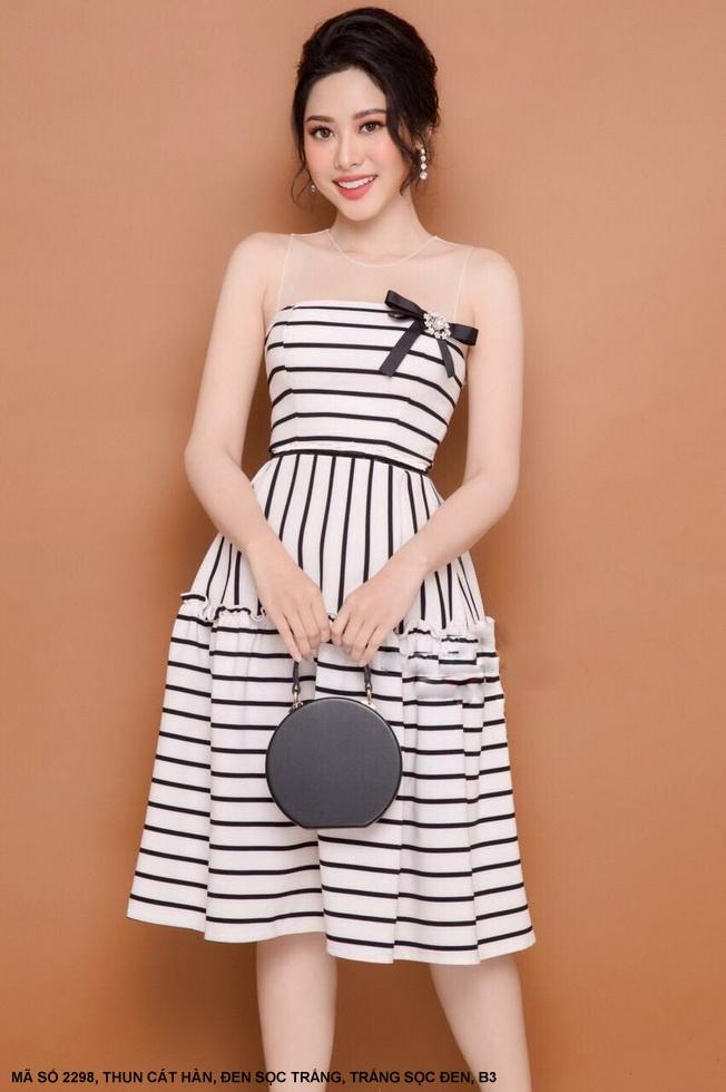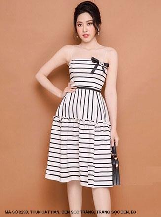 ĐẦM SỌC TRẮNG ĐEN ĐÍNH NƠ NGỰC XINH XẮNMã số : 2298Chất liệu : Thun Cát HànMàu : Trắng Sọc Đen , Đen Sọc Trắng