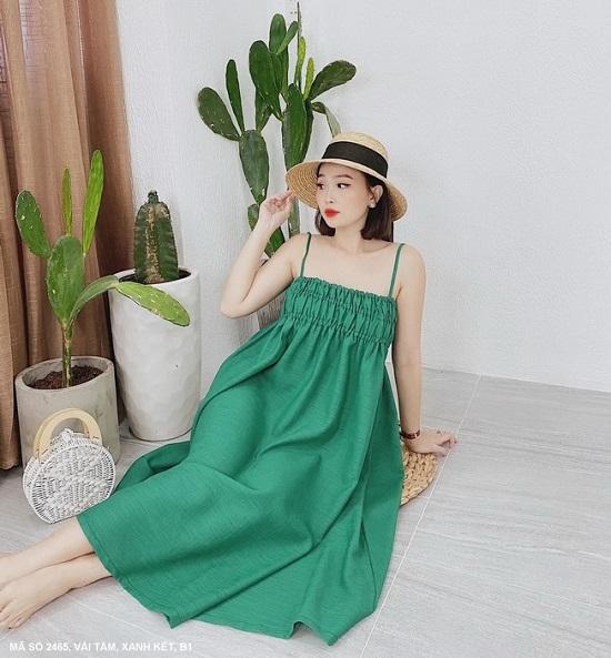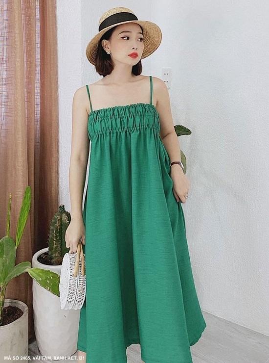 Sản Phẩm MaDe In Việt NamĐẦM SUÔNG 2 DÂY DÚN NGỰC - 2465Mã số : 2465Chất liệu : Vải TầmMàu :Xanh Két