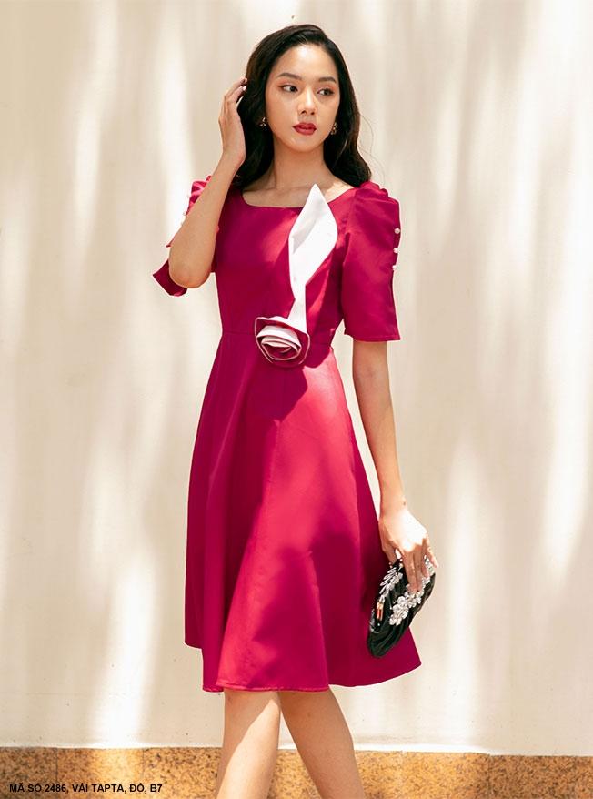 Sản Phẩm MaDe In Việt NamHàng Shop Cao CấpĐẦM TAY LỞ DÚN- 2486Chất liệu : Vải TaptaMàu : Đỏ