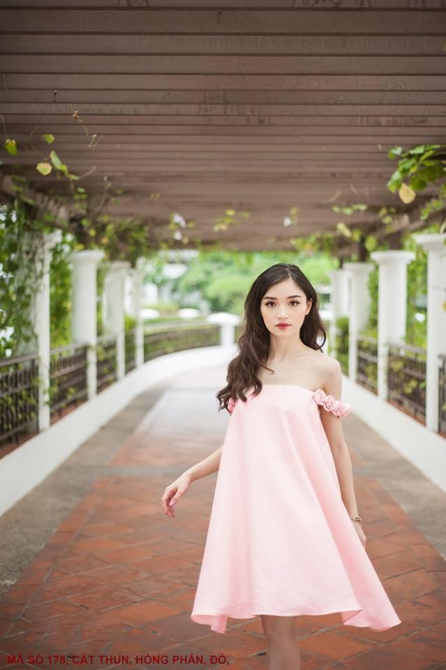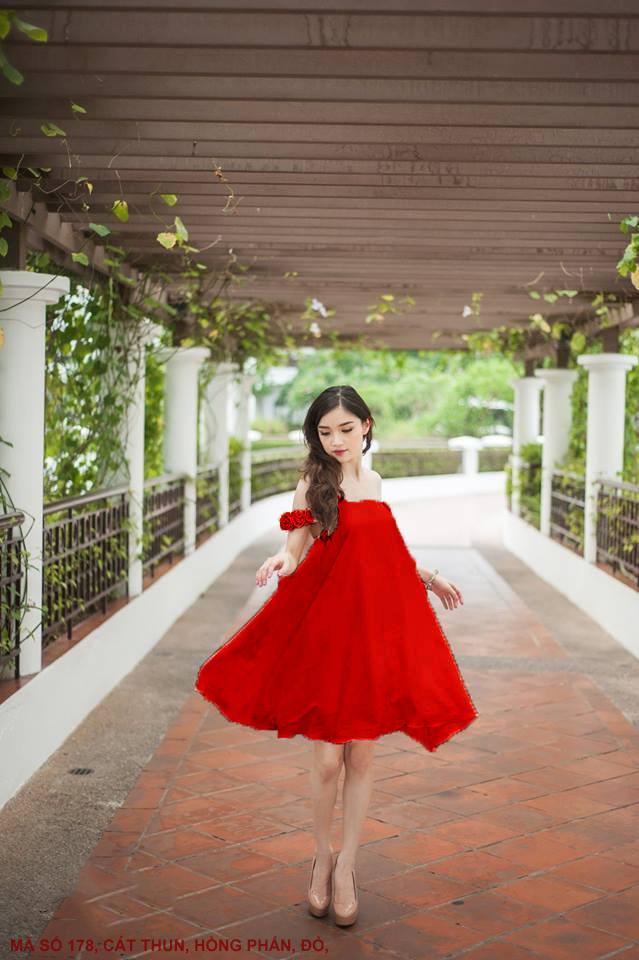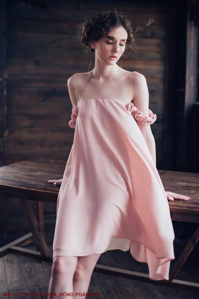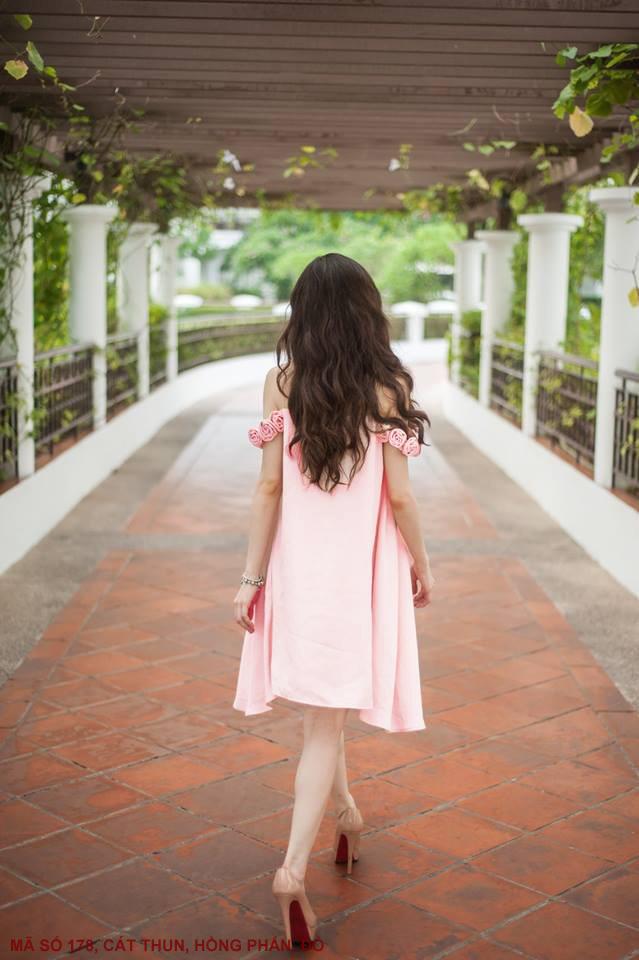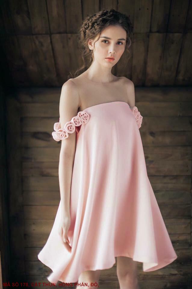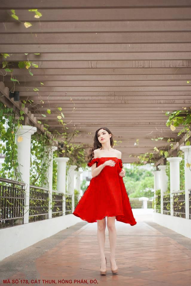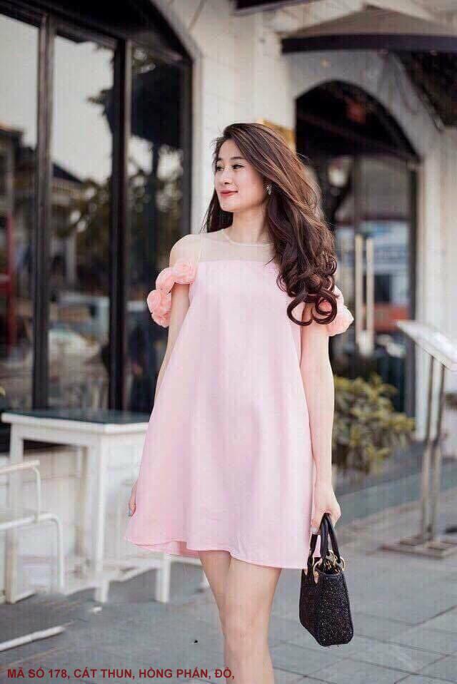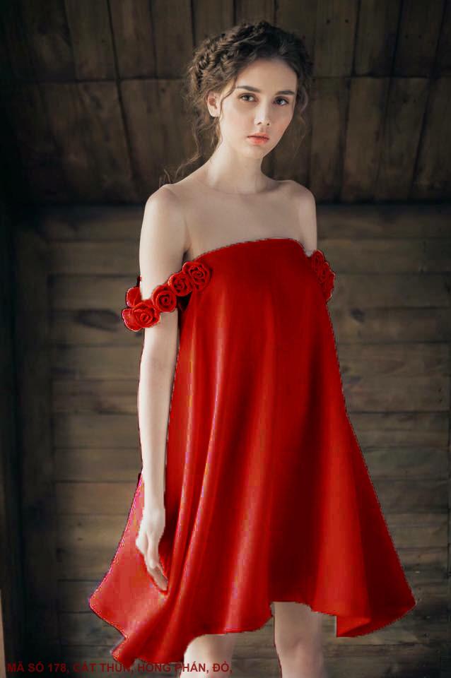 ĐẦM TRỄ VAI HOA HỒNGMã số : 178Màu : Hồng Phấn, ĐỏLoại vải : Cát Thun Hàn Quốc