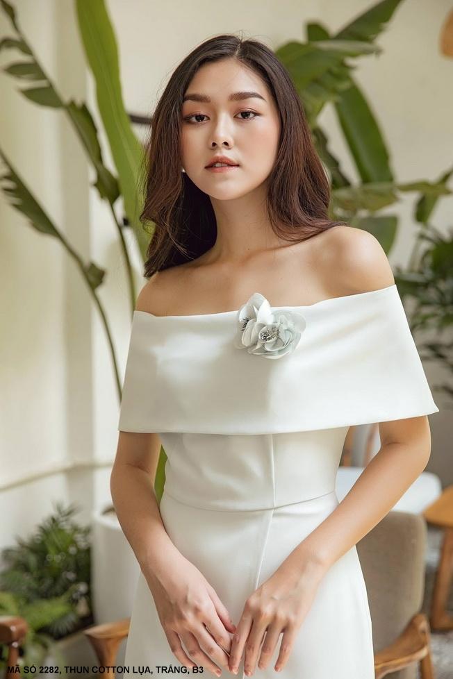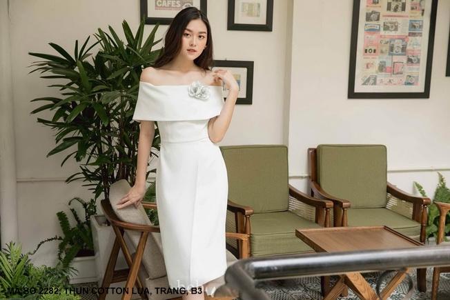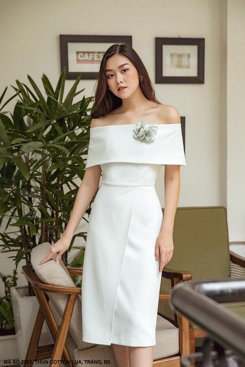 ĐẦM TRỄ VAI KHOÁI VÁYMã số : 2282Loại vải : Thun LazaMàu : Trắng