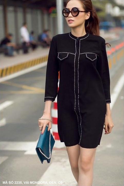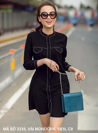 ĐẦM VIỀN CHỈMã số : 2235Loại vải : MondogaMàu : Đen