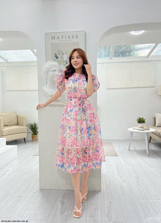 ĐẦM VOAN HOA TAY NGẮNMã số : 2540Chất liệu : Voan HoaMàu : Hoa