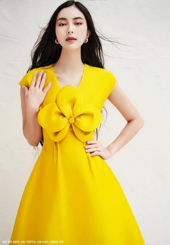 ĐẦM XÒE CỔ TIM ĐÍNH HOA LỚN TRƯỚC NGỰC - 2476Chất liệu : Vải TaptaMàu : Ca cao , Vàng