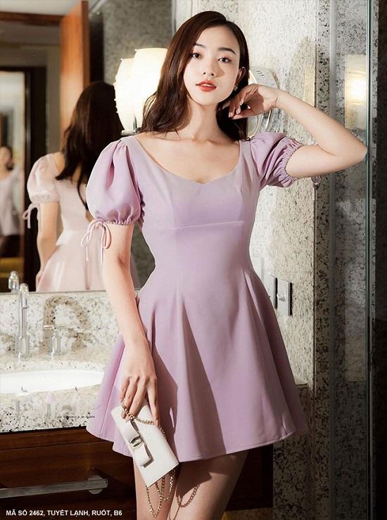 Sản Phẩm MaDe In Việt NamĐẦM XÒE CỔ TIM TAY NGẮN DÚN THẮT NƠ - 2462Mã số : 2462Chất liệu : Tuyết LạnhMàu :Ruốc