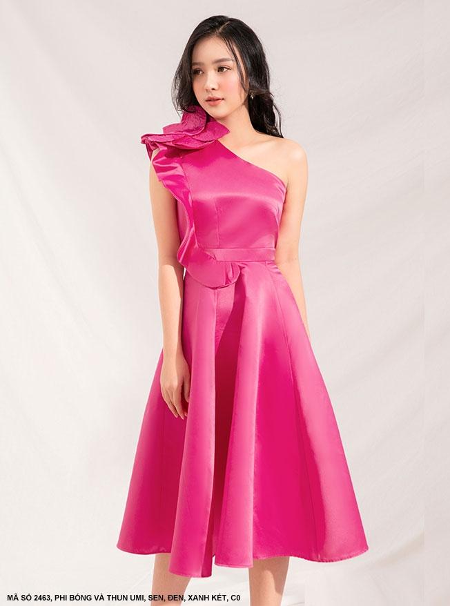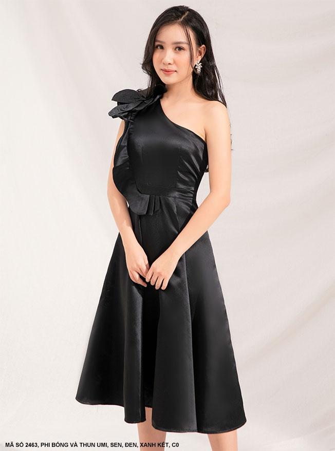 ĐẦM XÒE CỔ XÉO VAI ĐÍNH HOA LỚN - 2463Chất liệu : Vải TapTa Màu : Đen , Xanh két , Sen. Đỏ