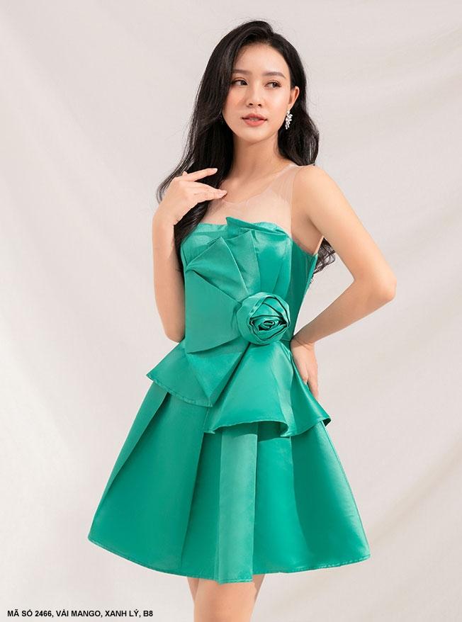ĐẦM XÒE CÚP NGỰC XẾP HOA HỒNG LỚN TRƯỚC NGỰC-2466