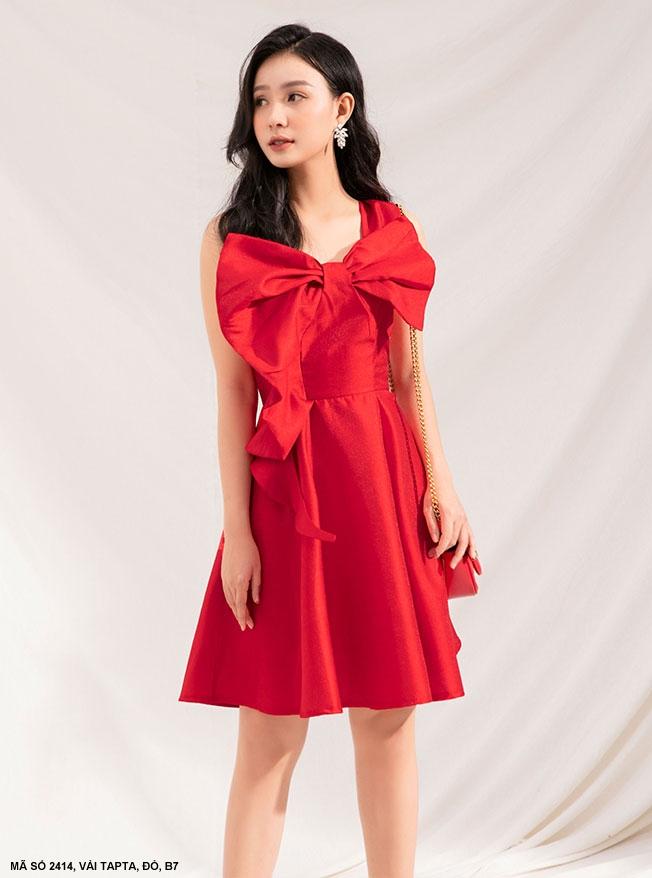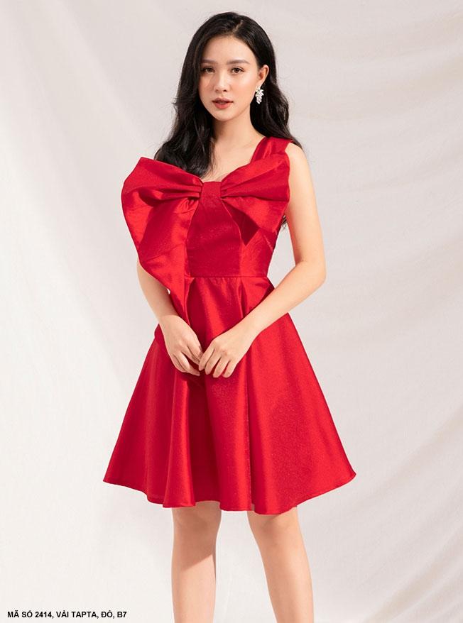 Sản Phẩm MaDe In Việt NamHàng Shop Cao CấpĐẦM XÒE MỘT VAI DÚN NƠ LỚN TRƯỚC NGỰC - 2414Mã số : 2414Chất liệu : Vải TaptaMàu : Đỏ