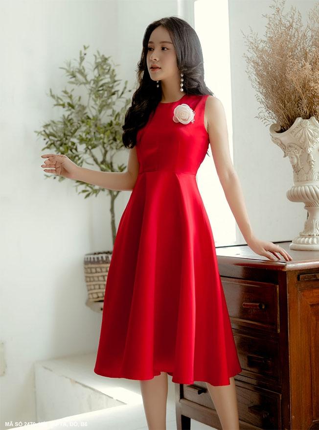 Sản Phẩm MaDe In Việt NamHàng Shop Cao CấpĐẦM XÒE SÁT NÁCH CÀI HOA TRƯỚC NGỰC - 2470Chất liệu : Vải TaptaMàu : Đỏ