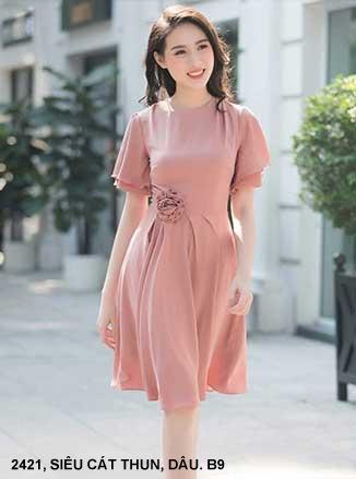 Sản Phẩm MaDe In Việt NamHàng Shop Cao CấpĐẦM XÒE TAY NGẮN DÚN ĐÍNH HOA HỒNG BÊN EO - 2421Mã số : 2421Chất liệu : Siêu Cát ThunMàu : Dâu