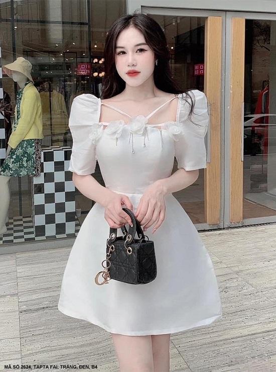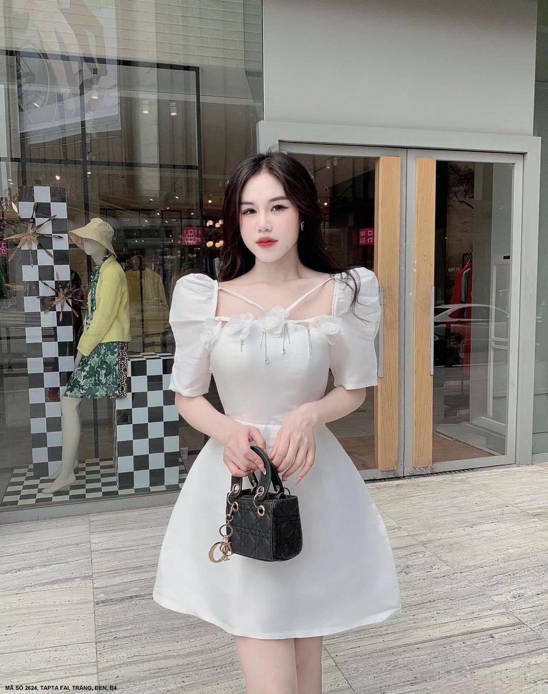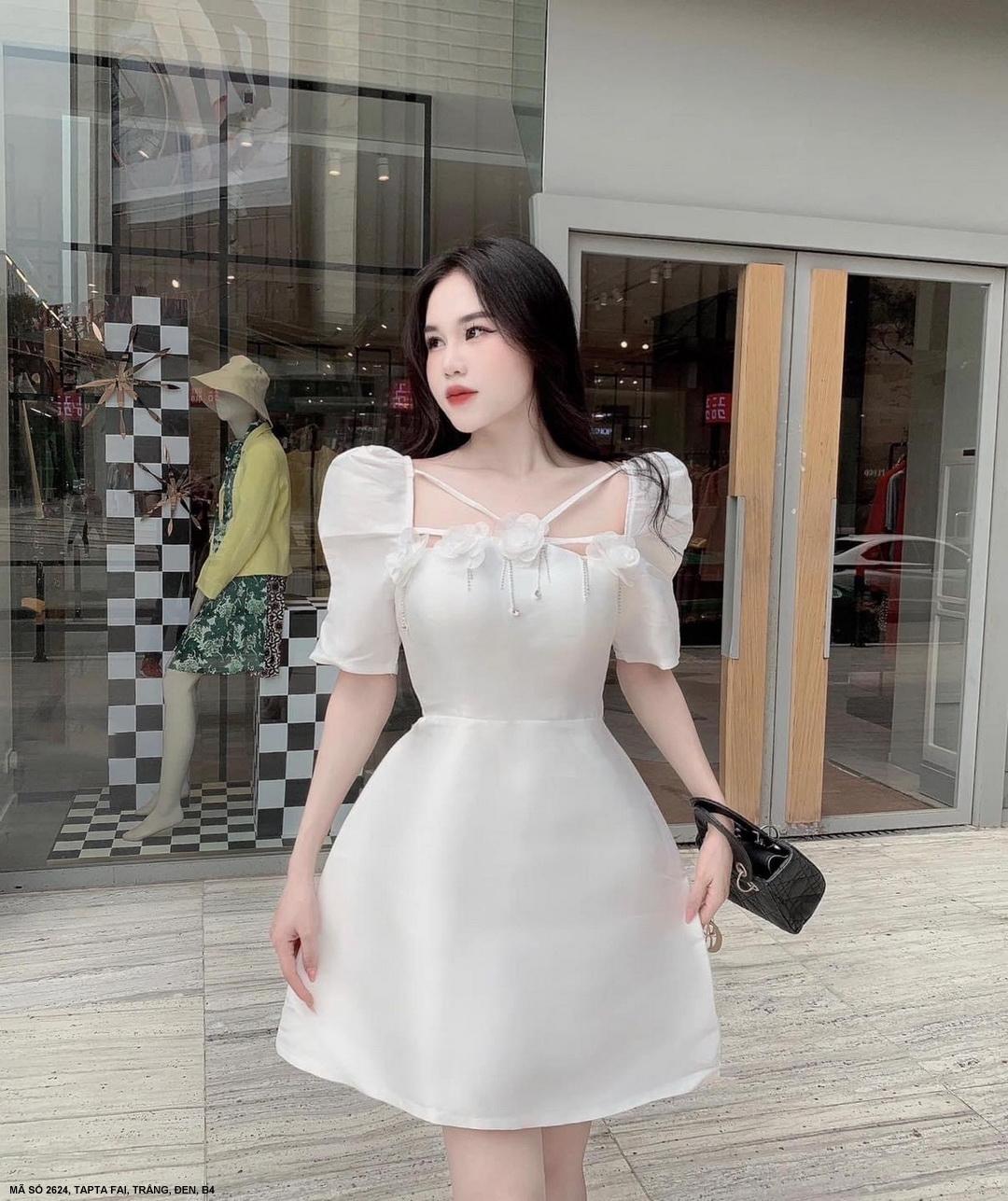 ĐẦM XÒE TAY PHỒNG ĐÍNH 5 HOA -2624Mã số : 2624Chất liệu : TAPTA FAIMàu : Trắng