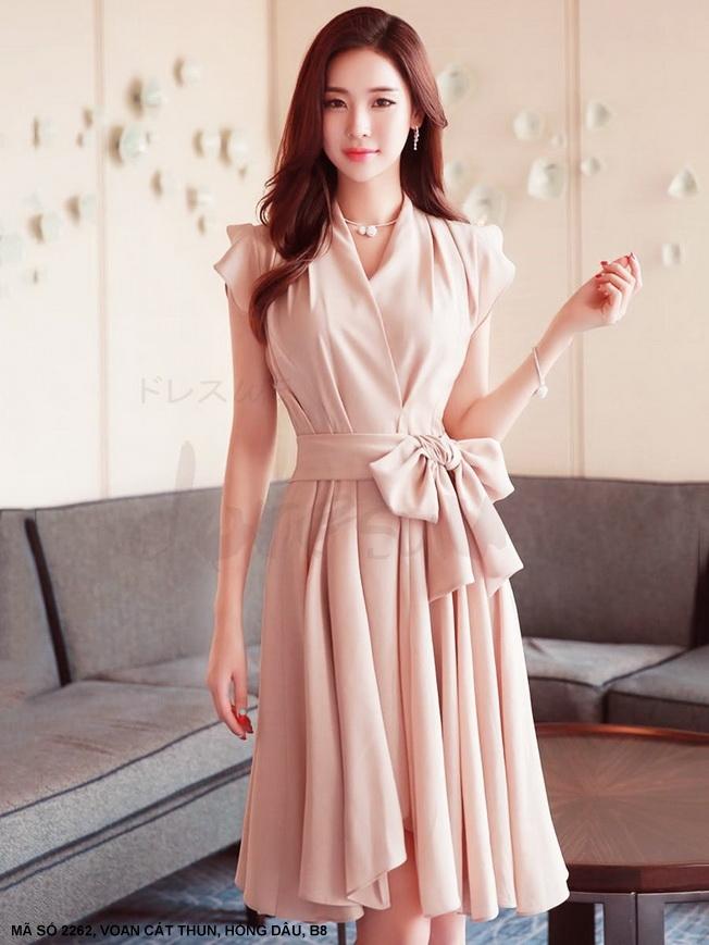 ĐẦM XÒE THẮT NƠ EOMã số : 2262Loại vải : Voan Cát ThunMàu : Hồng Dâu