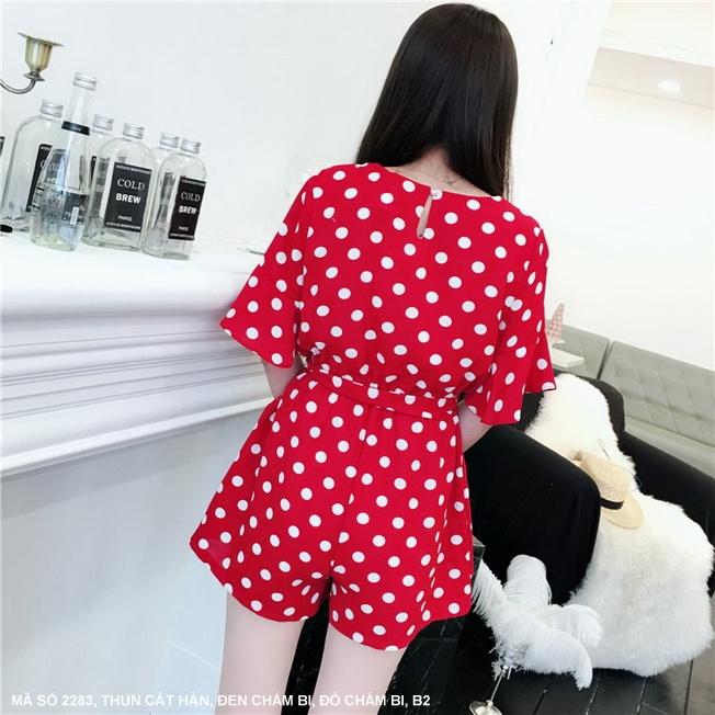 ĐỒ BAY NGẮN CỔ CHÉOMã số : 2283Loại vải : Thun Cát HànMàu : Đỏ Bi Trắng