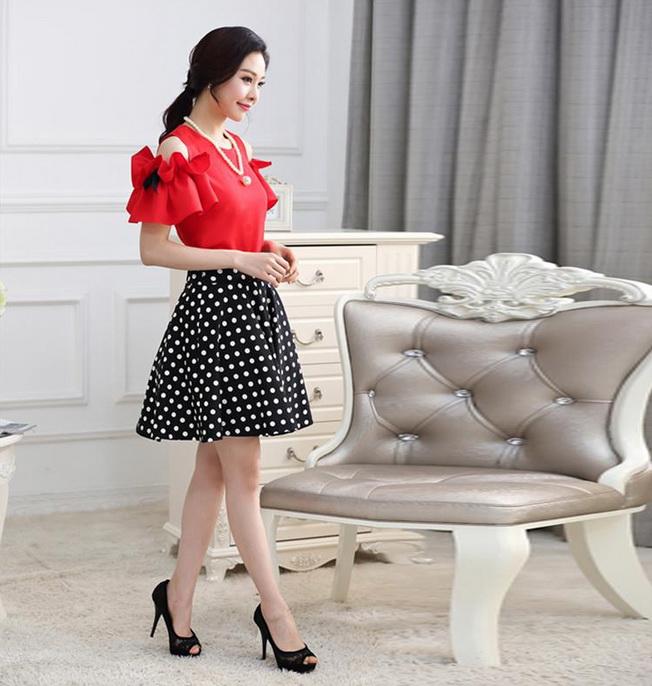 SET VÀ ÁO RỜI TAY CỘT NƠ XINH XẮNMã số : 1947Loại vải : Tơ Nhung VoanMàu : Trắng, Đỏ, Dâu
